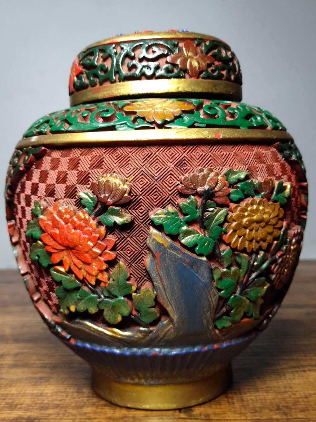 Antique Collection Clear Decor Red Lacquered Ware Hand Colored Drawing Flowers Open Rich And Expensive General Jars Hem a pair