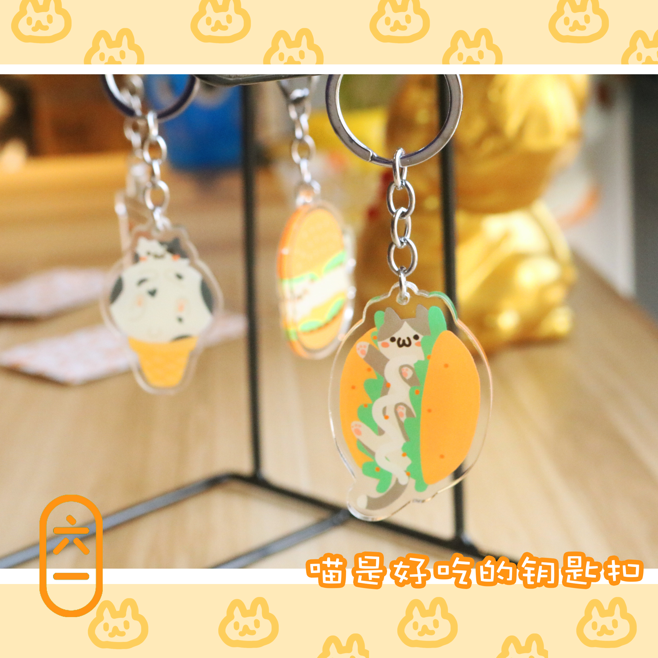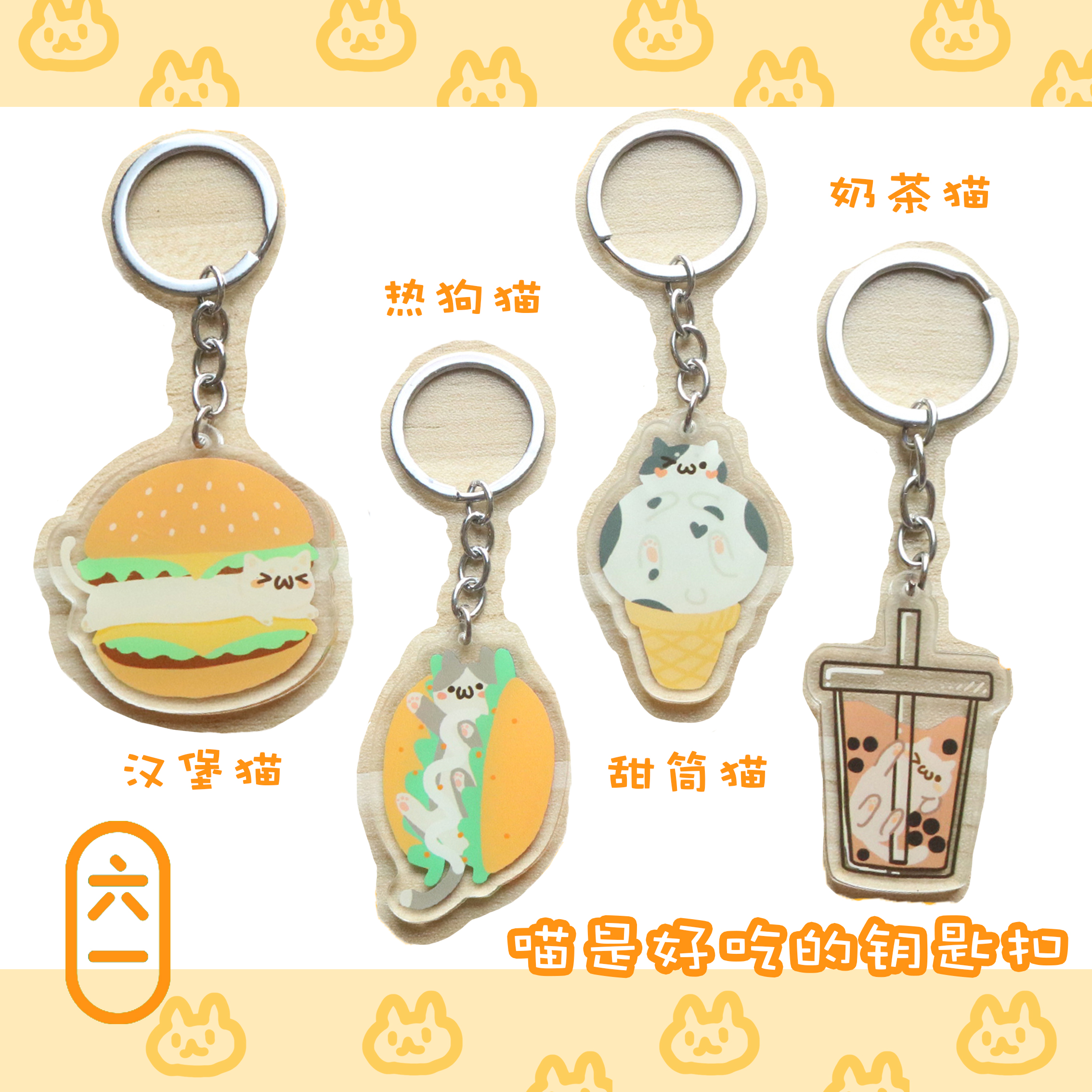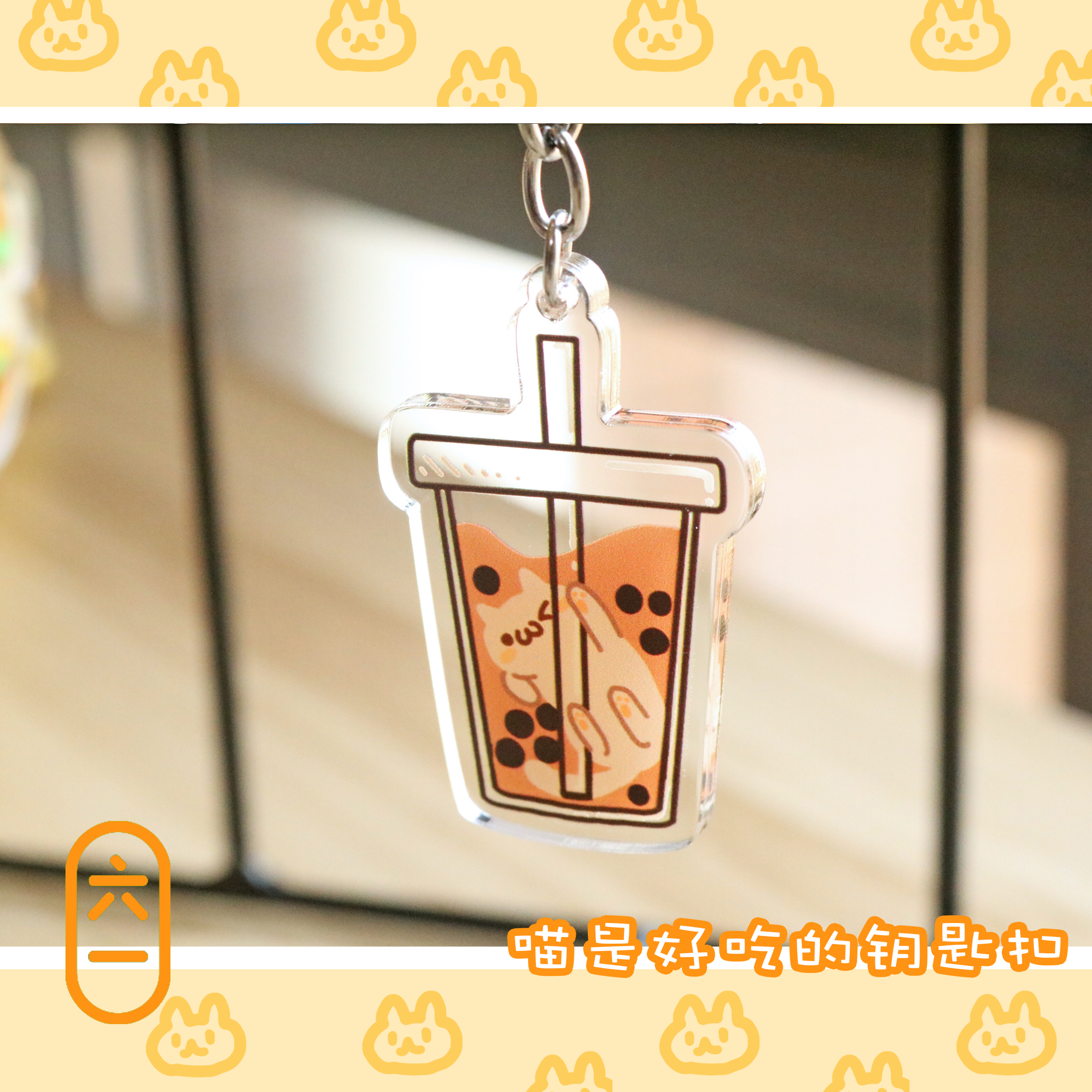 2 pieces Meow is delicious 4 types Cute cat keychain acrylic pendant cartoon milk tea gift
