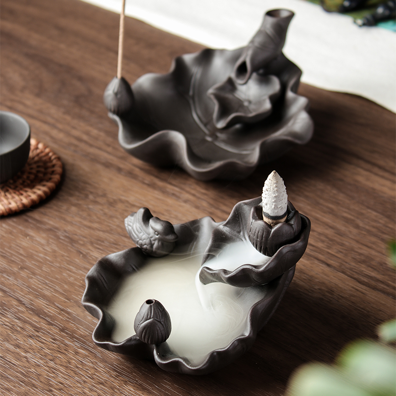 Black Cuddling Lotus Premiere Pool Turn Back Incense Stove Black Lingo Bird Watching-back Incense Stove