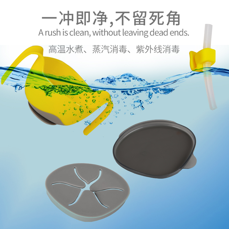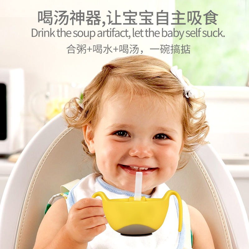 Baby drinking soup straw bowl three-in-one deputy food suction cup baby boy silicone gel zero spoon cutlery set to drink porridge