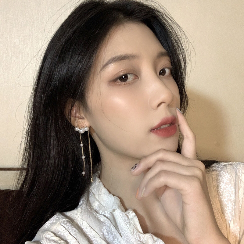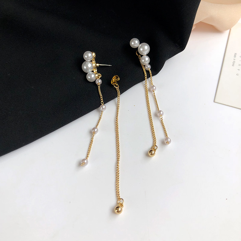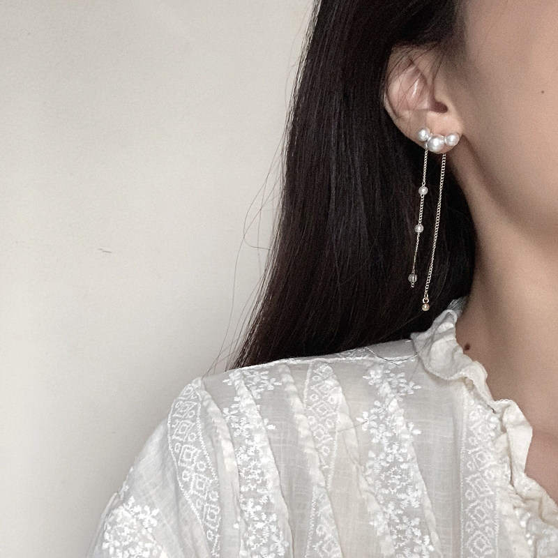 S925 silver pin Xianfan Personality Ear Pin Temperament Only Beauty Pearl Flow Suearrings One two wear long version earrings 637