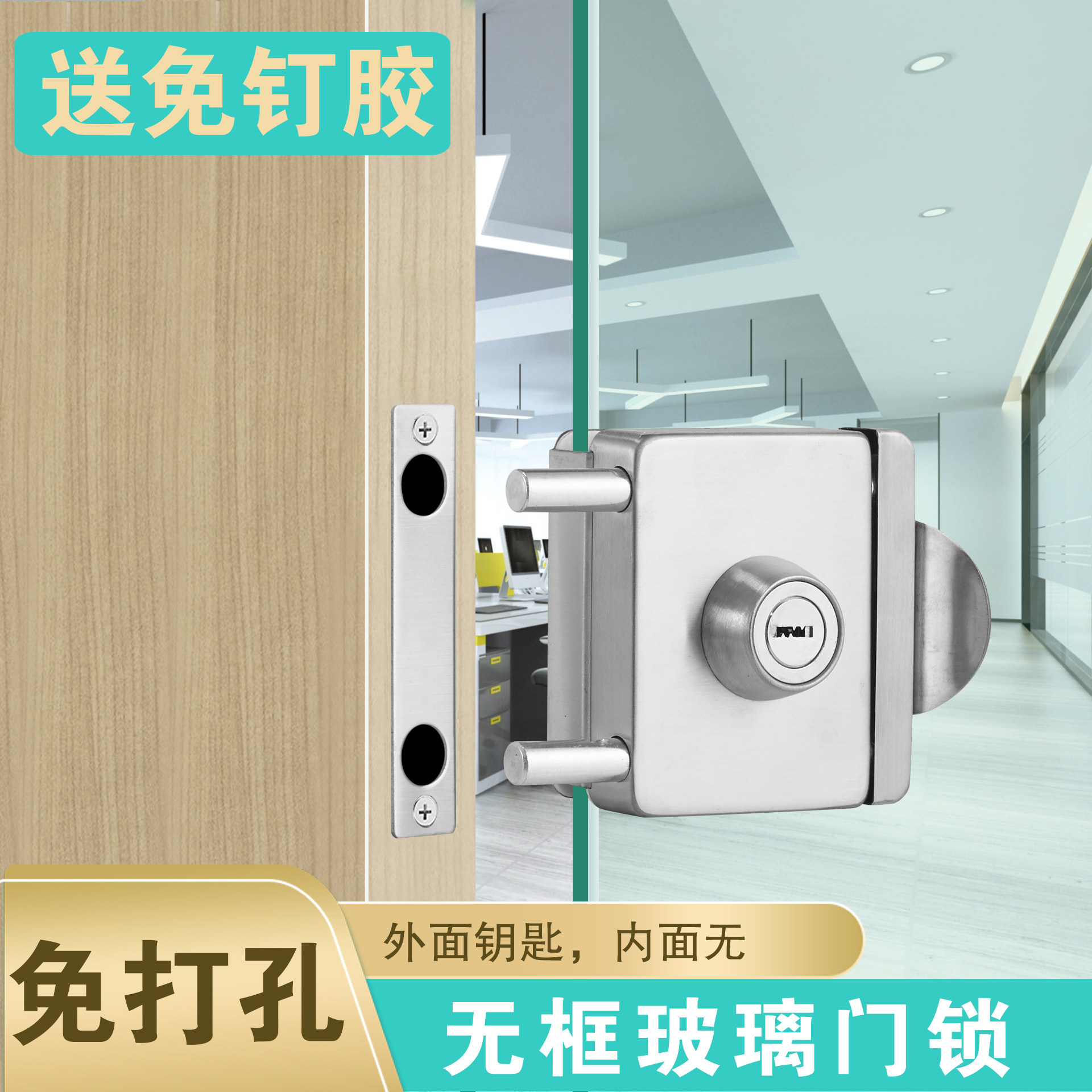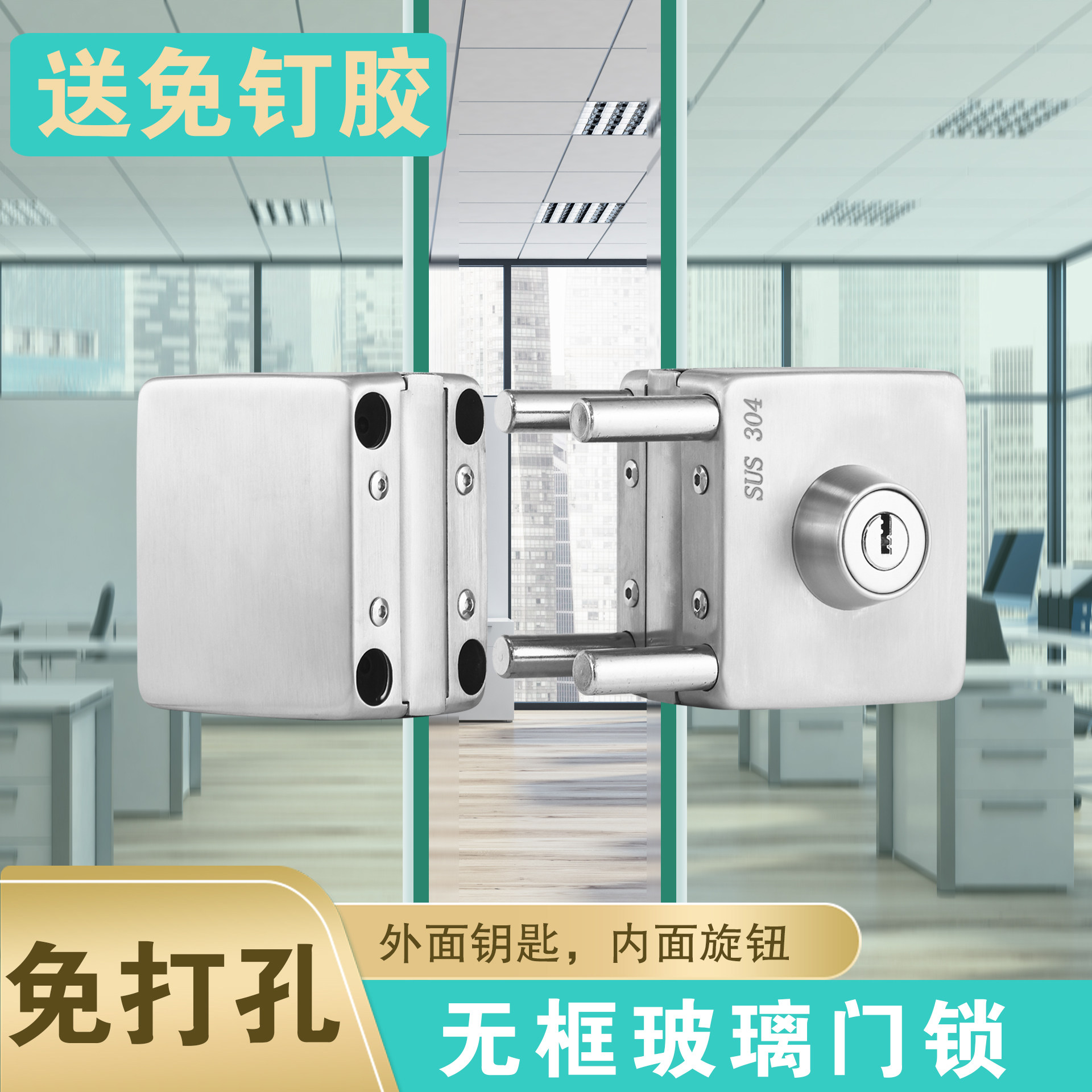 Hengchi stainless steel glass door lock square single door glass lock single double door drill-free glass door lock single door door lock