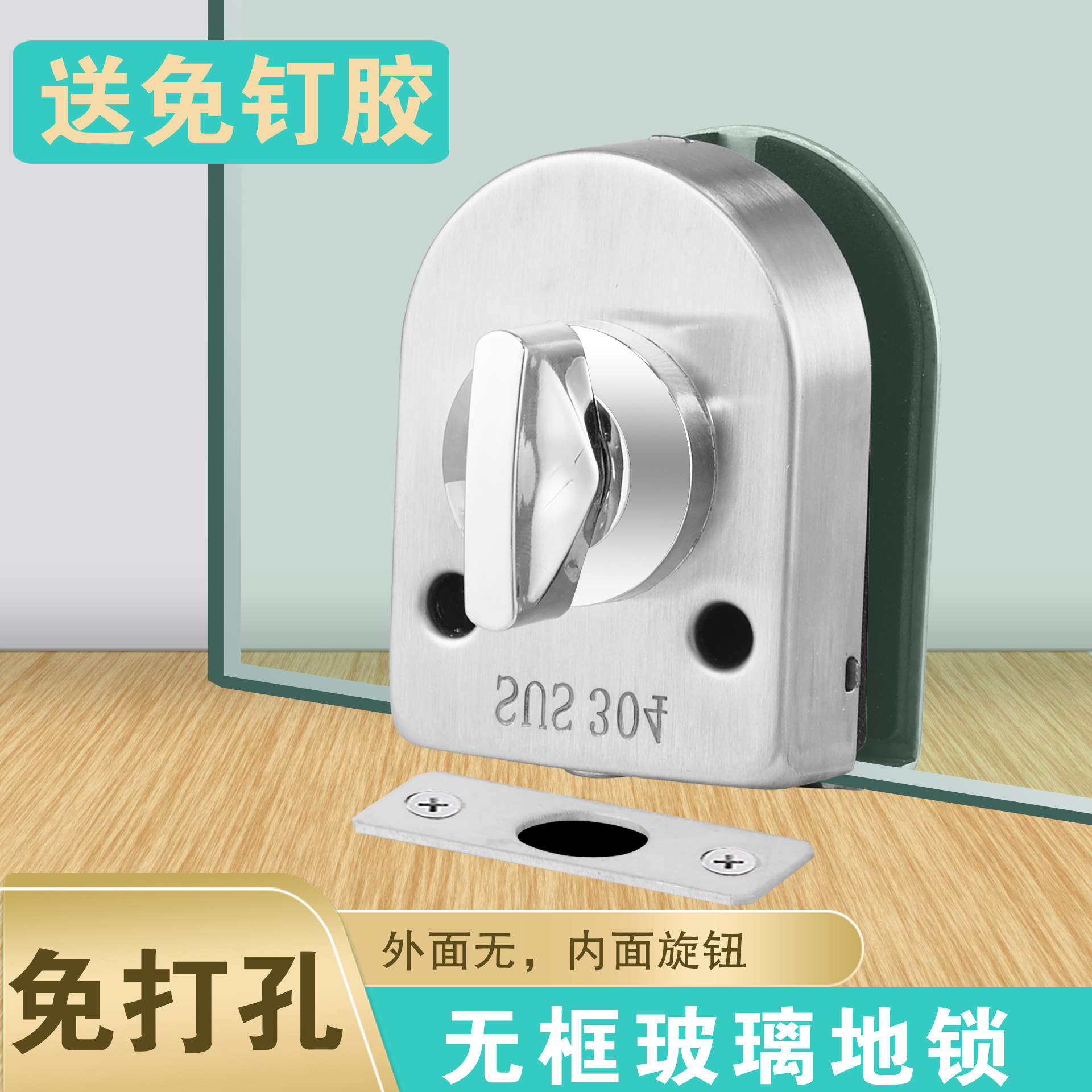 Square No Drilling Glass Door Lock