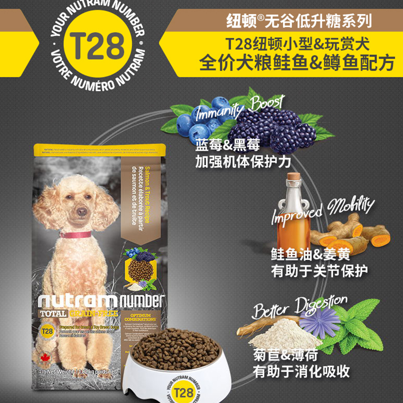Newton dog food T27 Teddy Ke fund hair T28 imported full-stage general-purpose adult dog puppy food 1 82kg