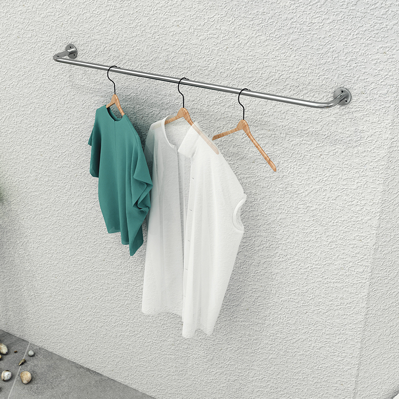 Clothing store hanger display rack wall men's and women's clothing store silver wall hanging clothes rack stainless steel solid hanging