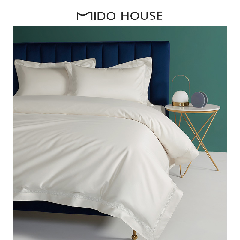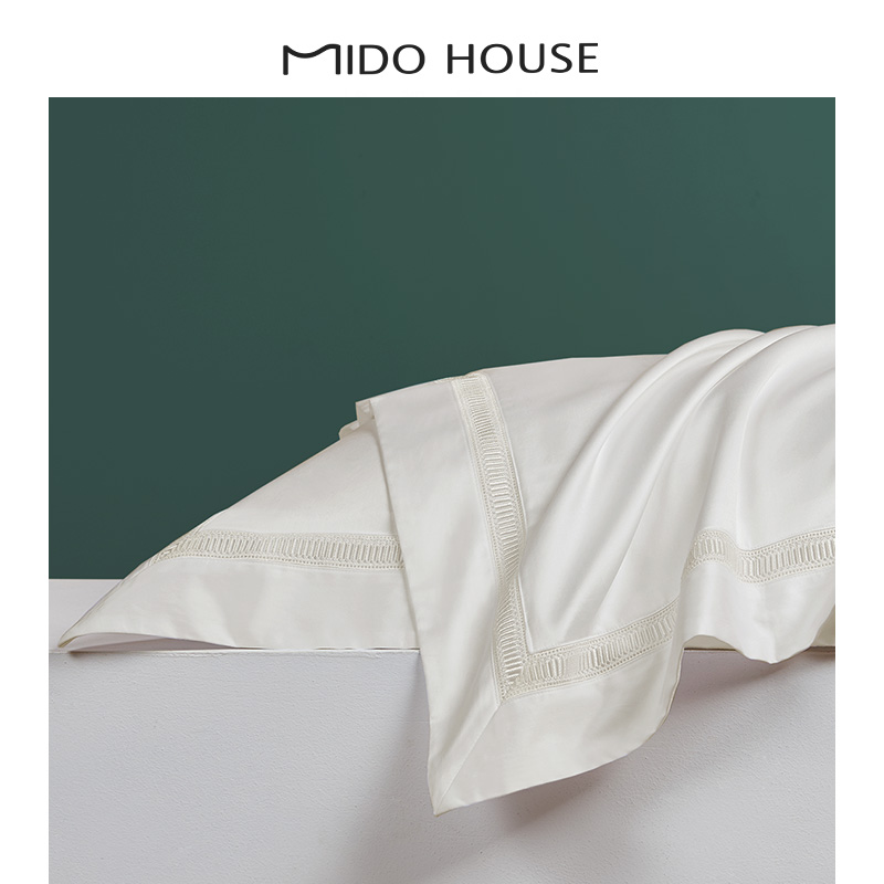 MIDO HOUSE high-end 120 horse cotton hollow embroidery five-star hotel four-piece set net tea white