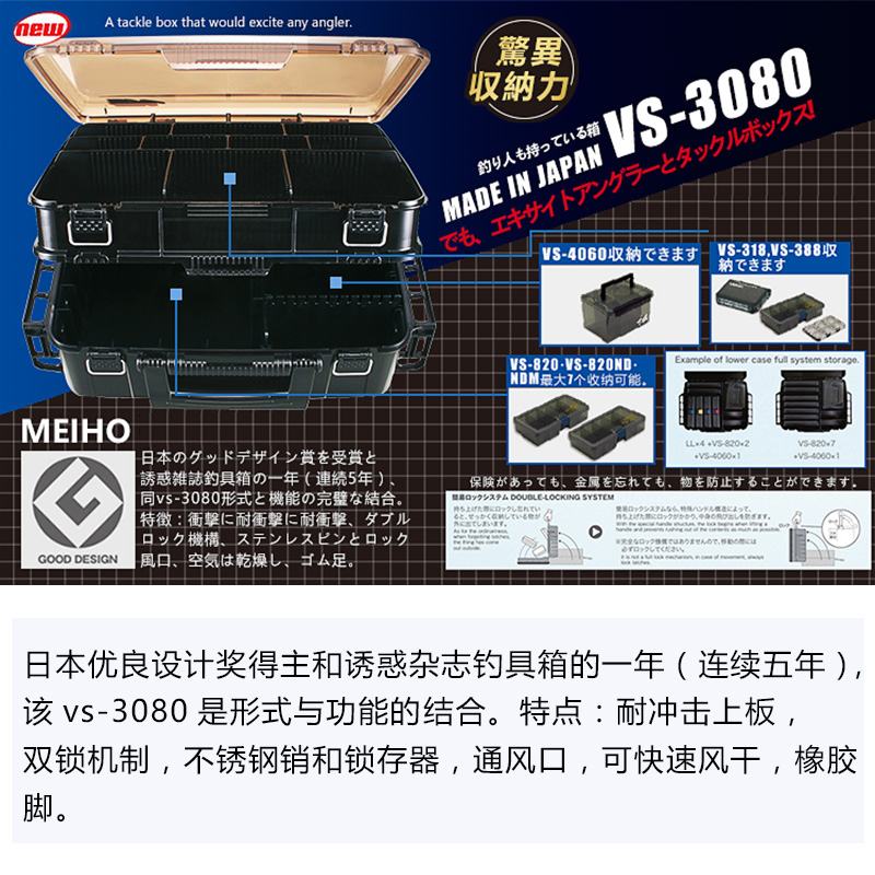Japan Minbang MEIHO VS-3070 3080 3078 Double layer Lutheran Box Bait Box Boat Fishing Box
