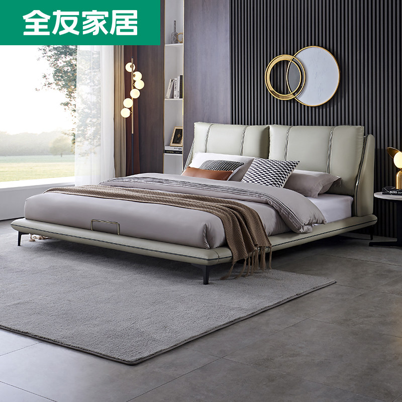 Full Friend Home Genuine Leather Bed Modern Extremely Simple Imported Head Layer Cow Leather 1 8 m Double Leather Art Bed Bedroom 105181