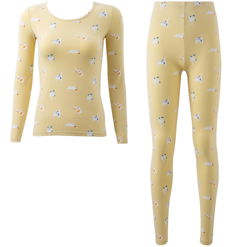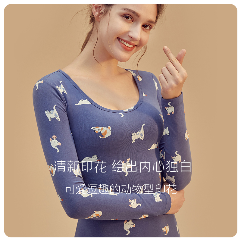 Top-Pipermy pure cotton calorific clothing Cat Kitty Printed Top Melon Melon Slim Fit Cotton Ammonia Autumn Clothing Sanitary Pants Suit