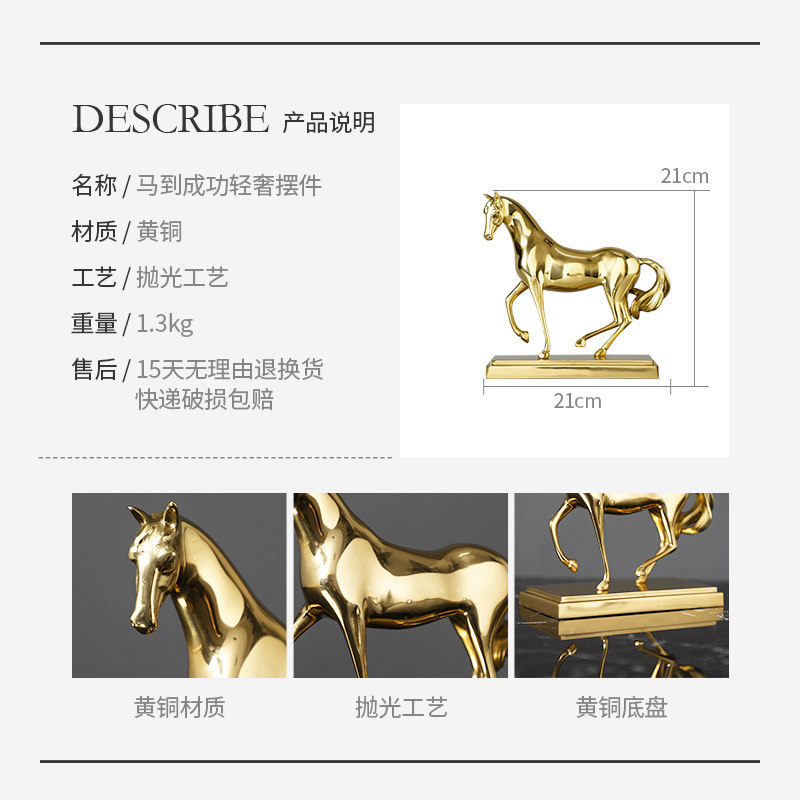 Nordic fashion light luxury brass horse to success decoration living room home accessories creative bedroom wine cabinet decoration