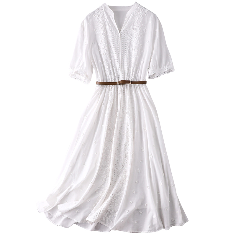 Solid Petal Hollowed-out Embroidery V Necklace Lace Dress Woman 2022 New Temperament Cashew With Long Skirt In waist