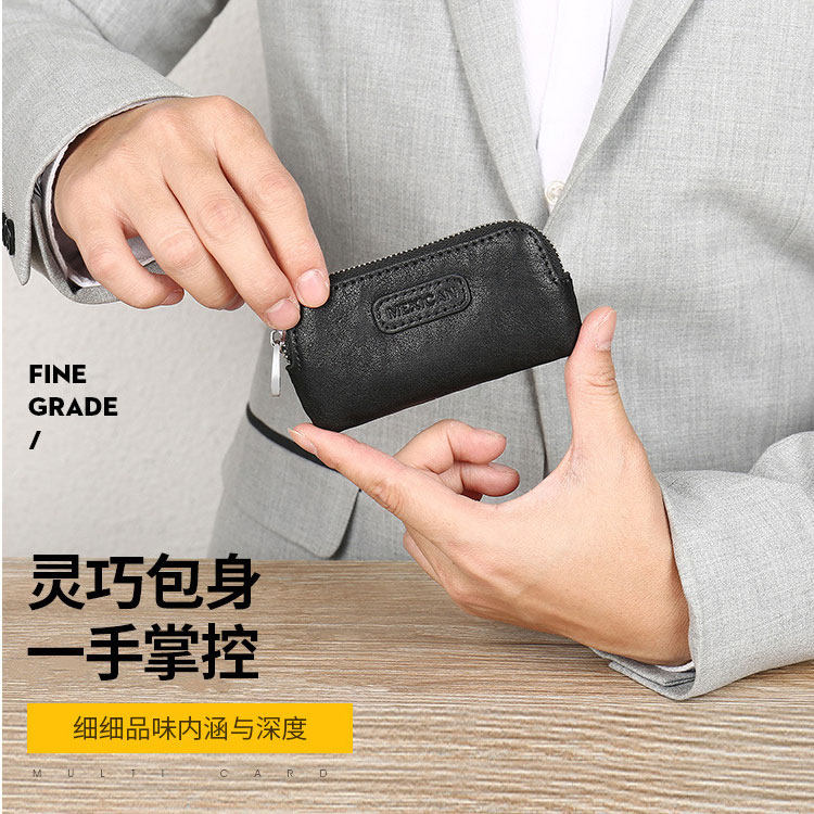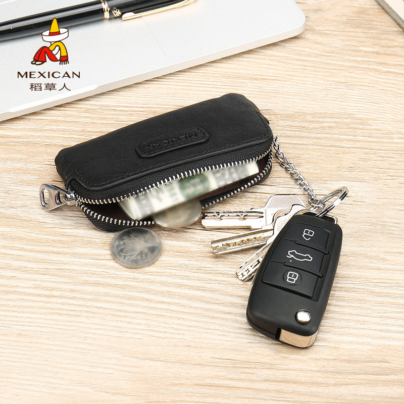 Rice straw man key bag genuine leather male and female universal car key leather set small pull chain zero wallet cow leather