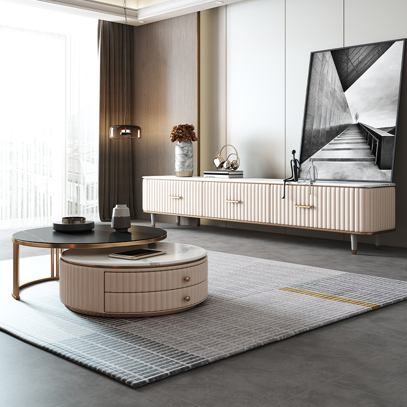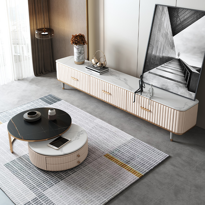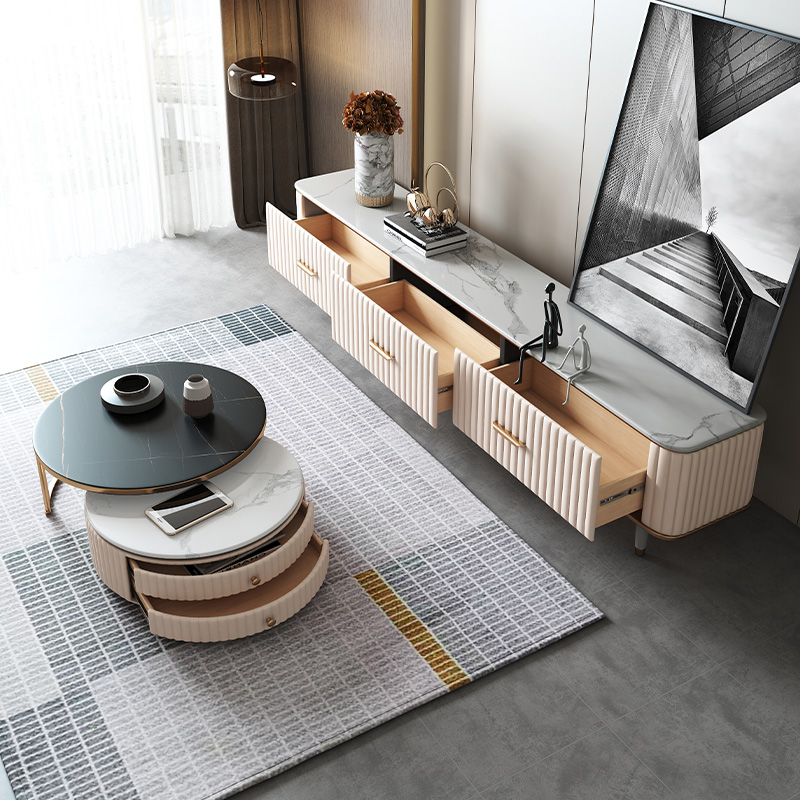 Light Extravagant Imported Rock Plate TV Cabinet Tea Table Composition Living-room Modern Minima Small Household Type Ground Cabinet Home Tea Table Suit