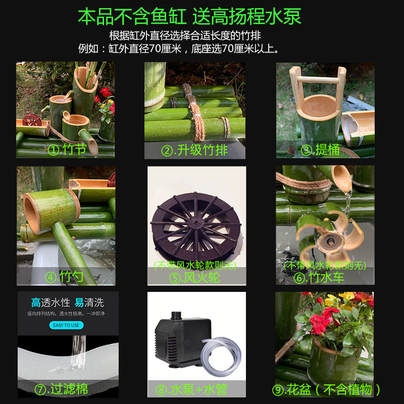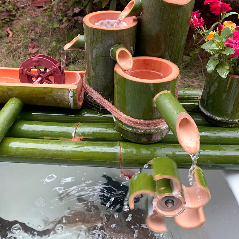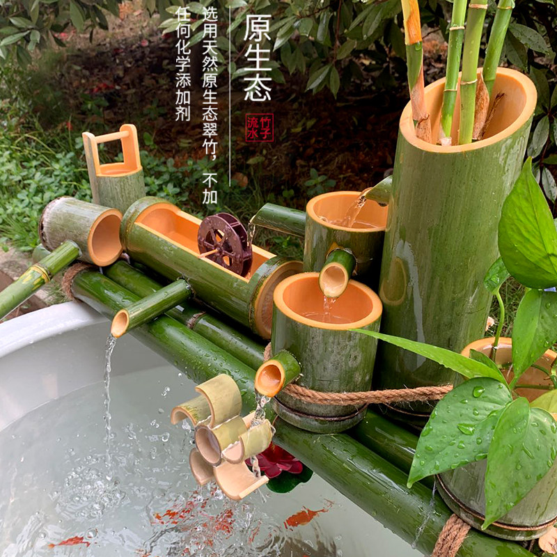 Bamboo flowing water vessel fish farming water circulation old stone tank water tank landscaping bamboo row flowing water ornaments small bamboo flowing water