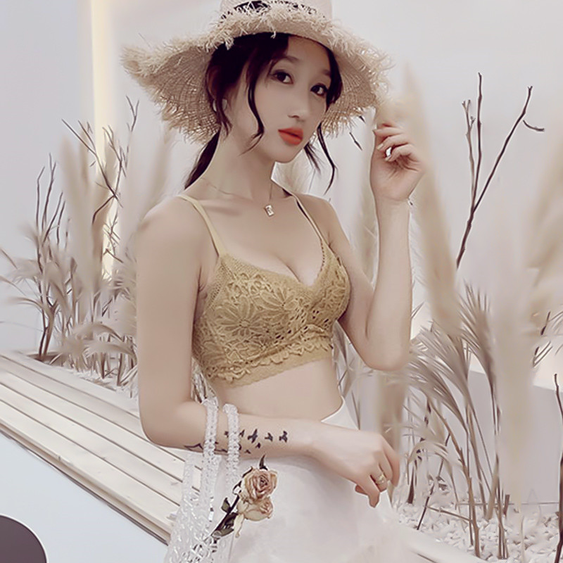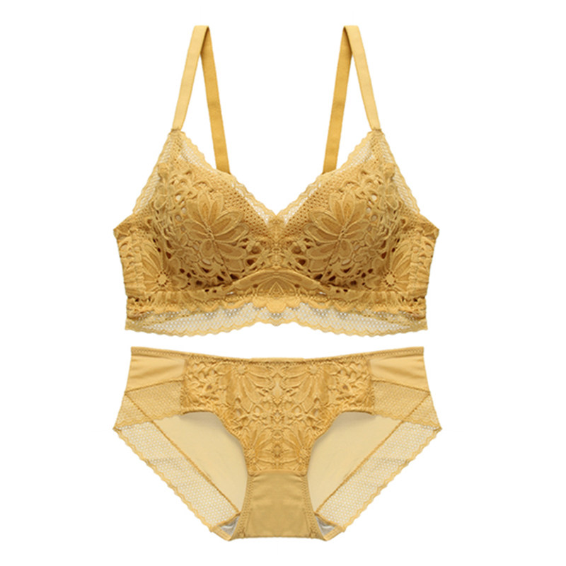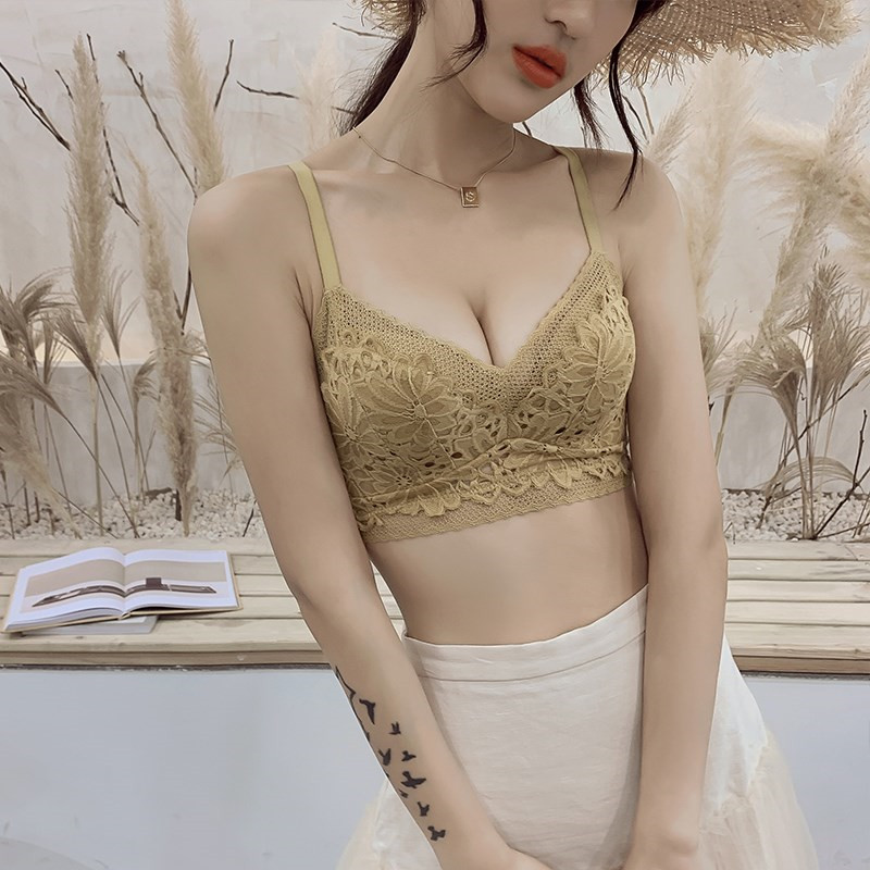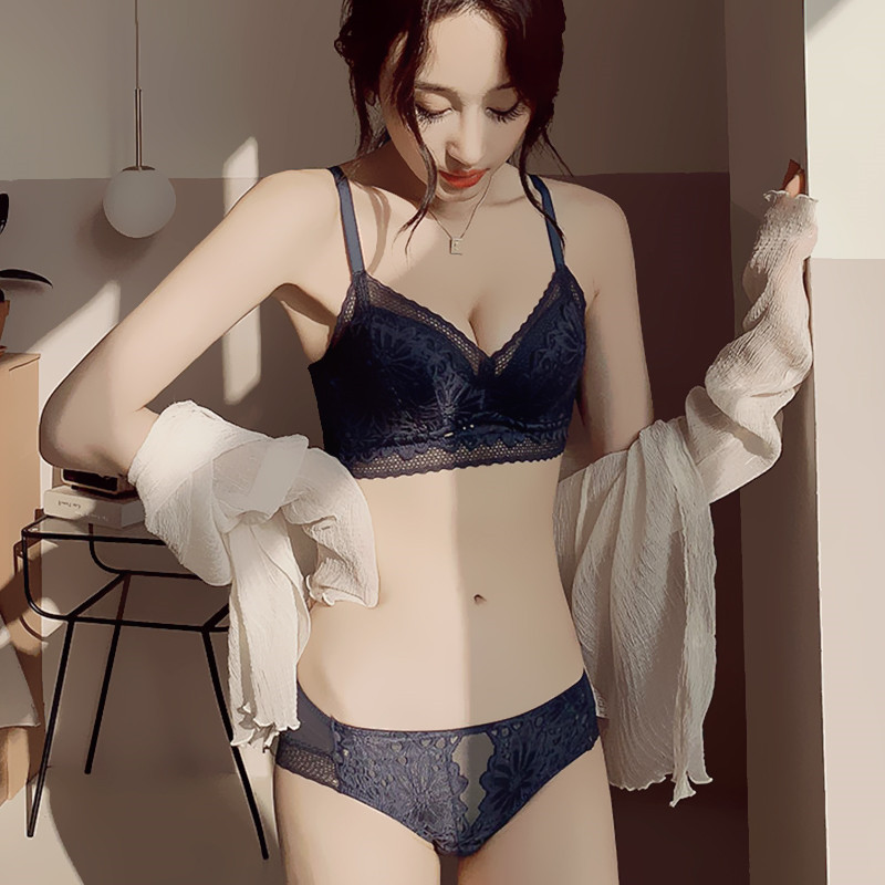 Japanese sexy lace bra set small chest gathering no steel ring upper support adjustable anti-sagging underwear women thin