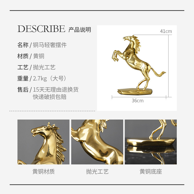 Modern Fashion Copper Horse Light Luxury Ornament Living Room Wine Cabinet Desktop Decoration Creative Art Office Furnishing Crafts