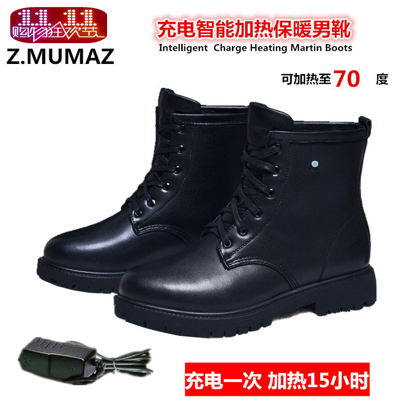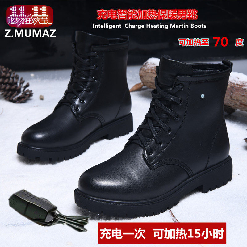 Electric heating shoes rechargeable walking men's shoes outdoor heating warm shoes genuine leather heating military boots winter electric heating leather shoes men