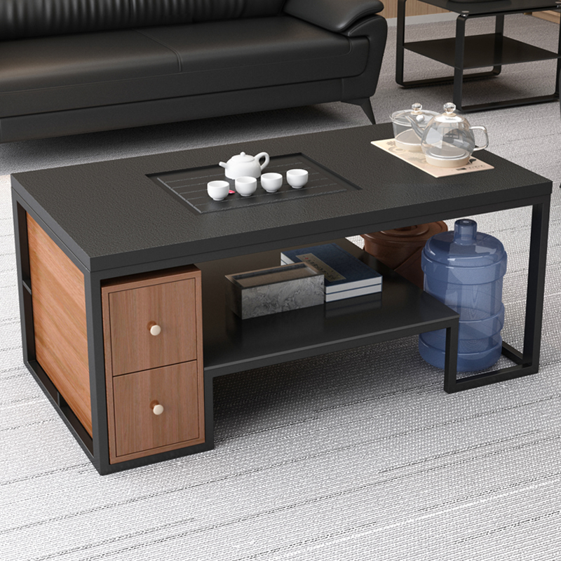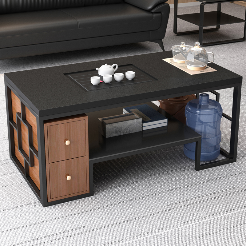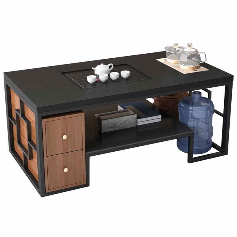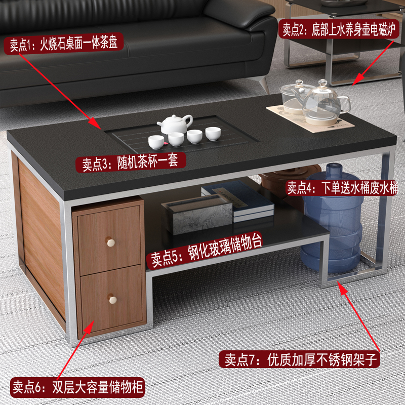 Fire burnt stone kung fu coffee table simple modern stainless steel marble bubble tea table office kung fu tea table with magnetic stove