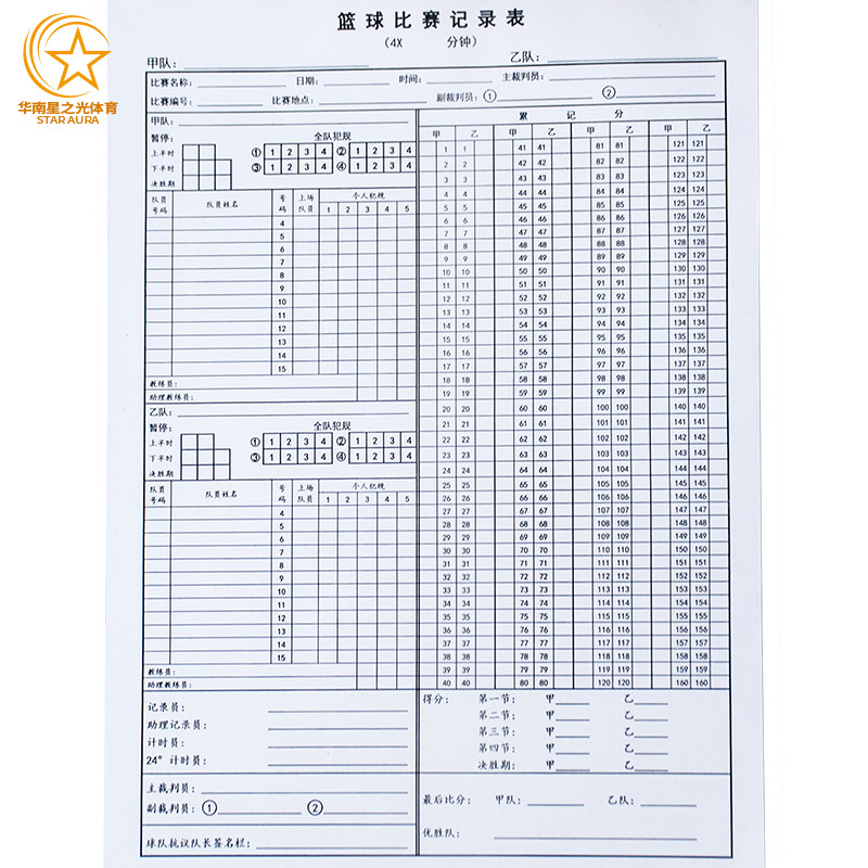 Basketball game record sheet carbon reproduce scorecard table form quad foul foul foul record book