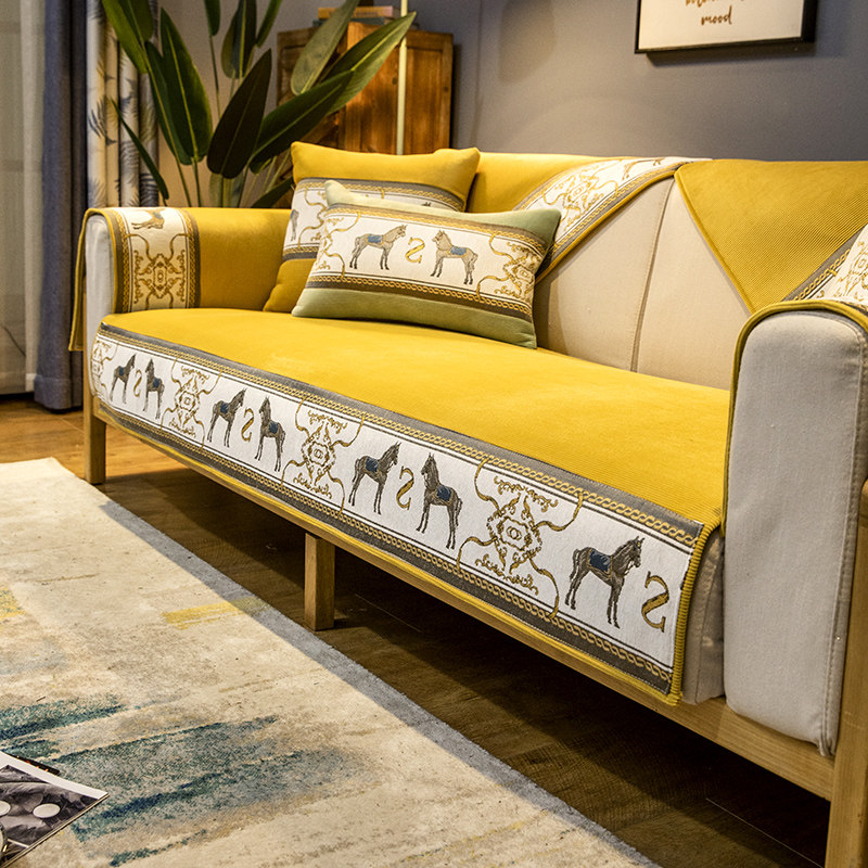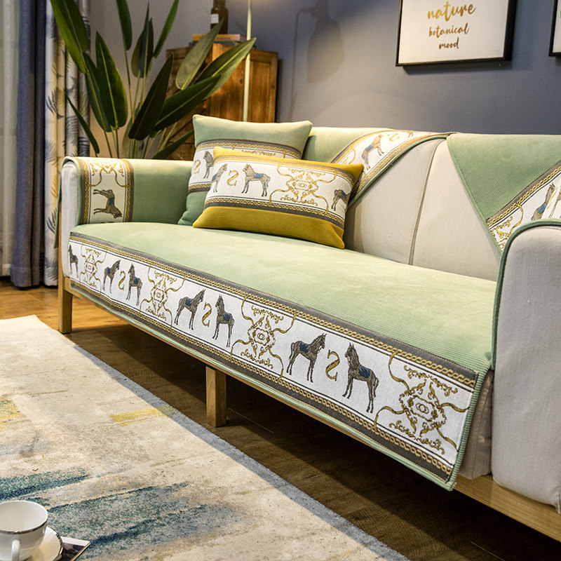 Nordic light luxury sofa cushion four seasons universal non-slip all-inclusive cushion simple modern living room leather cover back towel