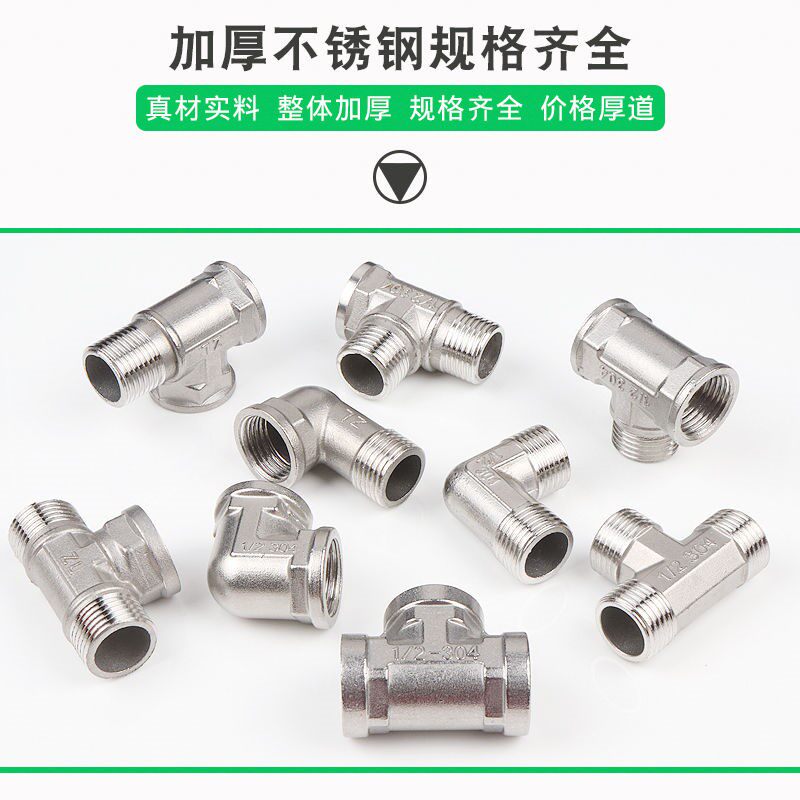 Stainless steel joint internal wire direct inside and outside silk double male screw three-way elbow 6 sub-turn for 4-minute diameter water heating water pipe fitting