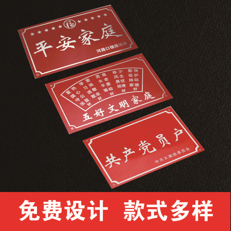Set to make aluminum sand Communist Party member Technology Demonstration Family Ping An Five Good Cleaning Family ten Stars Civilization Home Doors Health Responsibilities Three-Five-Package Aluminum Doorplate Nameplate Production