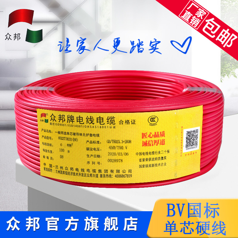 Crowdsourced Wire & Cable BV2 5 squared national standard single-strand hard copper wire flame-retardant home socket lighting