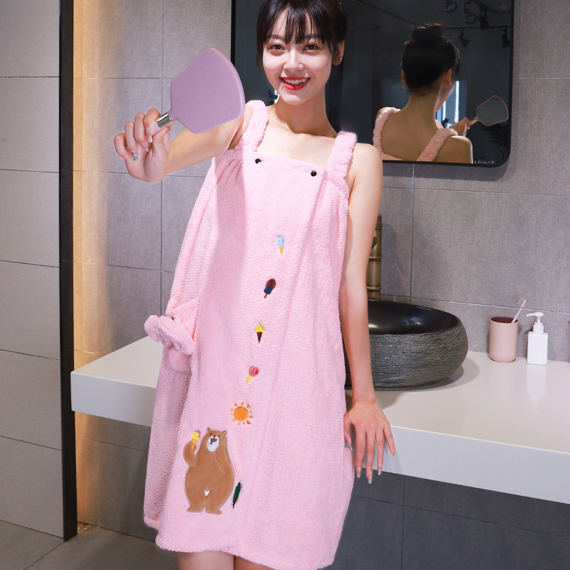 Can wear wrap-wrap with shoulder strap bath towels Summer Thickening Cute Bath Bathrobe Swimming Harness Bath Dress Bath Dress