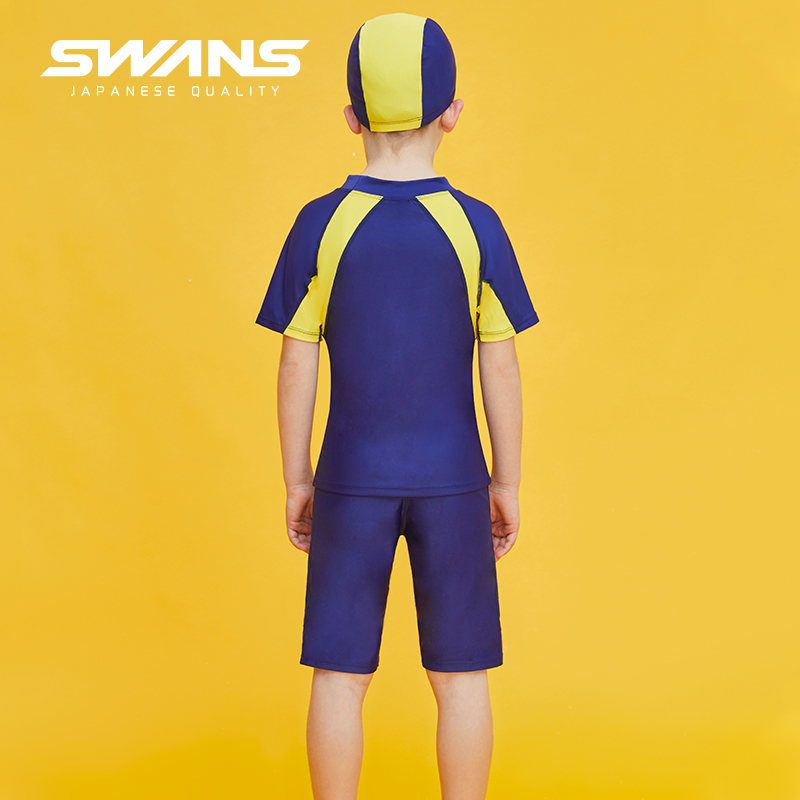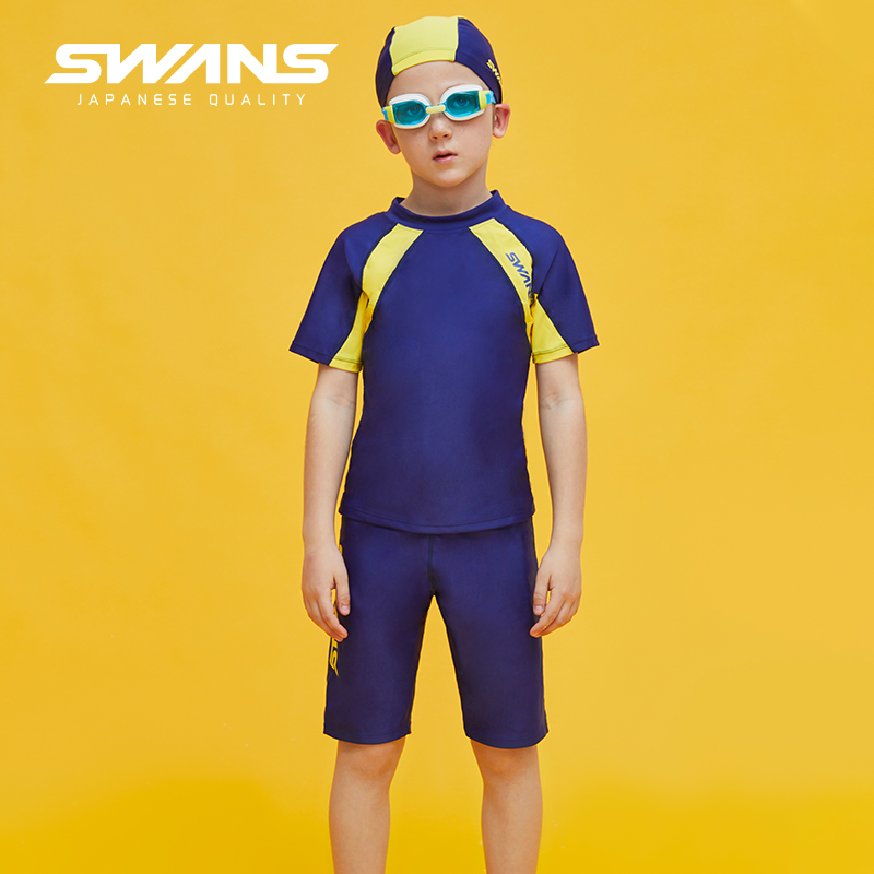 swans Children's swimsuit Boys split baby sunscreen bathing suit Middle and large children's quick-drying swimming trunks set 21 new