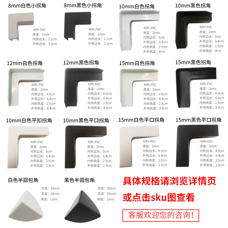 8 mm white corner 8 mm black corner 10 mm white corner 10 mm white corner 10 mm black corner 10 mm white square corner corner 10 mm black square corner 12 mm white corner