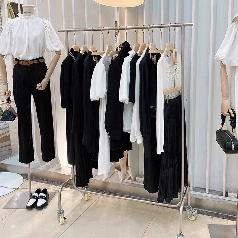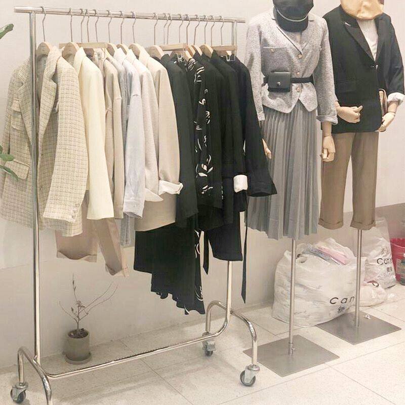 Clothing store display rack hanger single lever stainless steel brushed men's and women's shelf floor-standing creative clothes rack