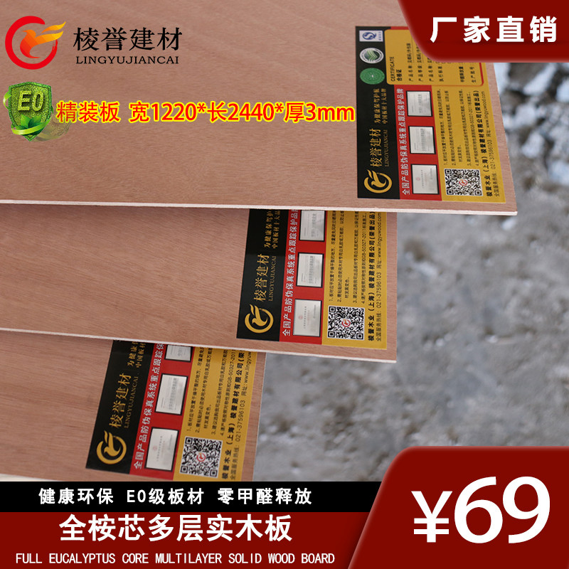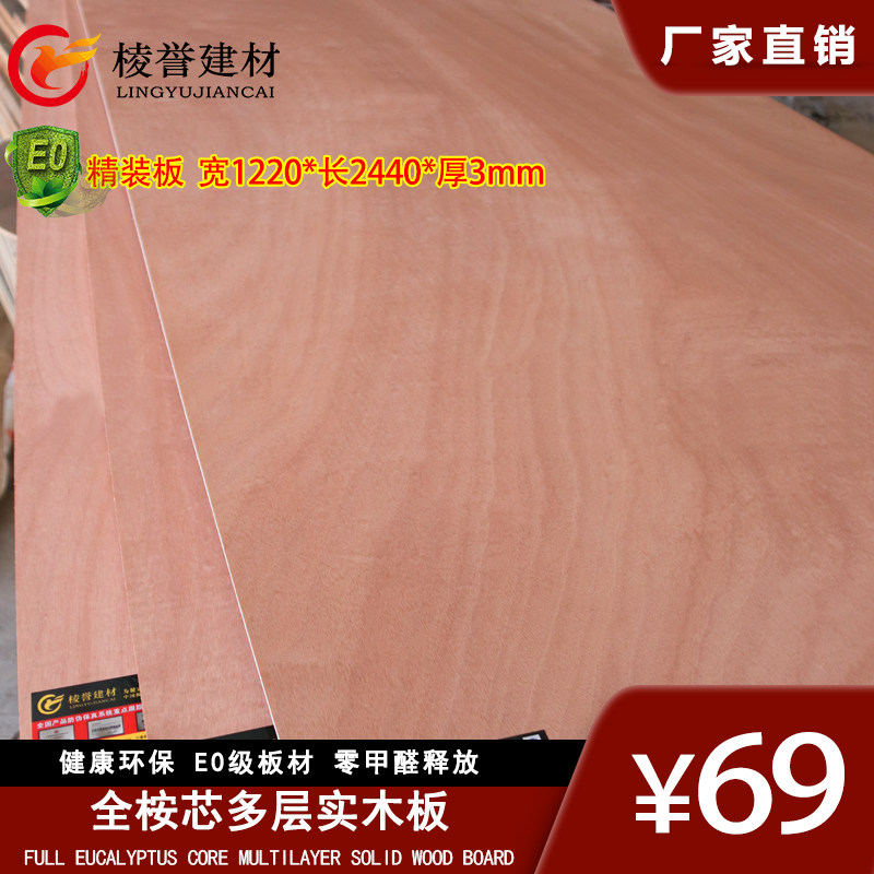 Multi-layer board 3mm environmental protection E0 grade plywood full eucalyptus core material triple plywood three plywood furniture board solid wood multilayer board