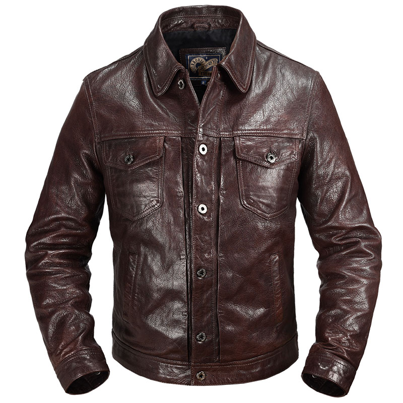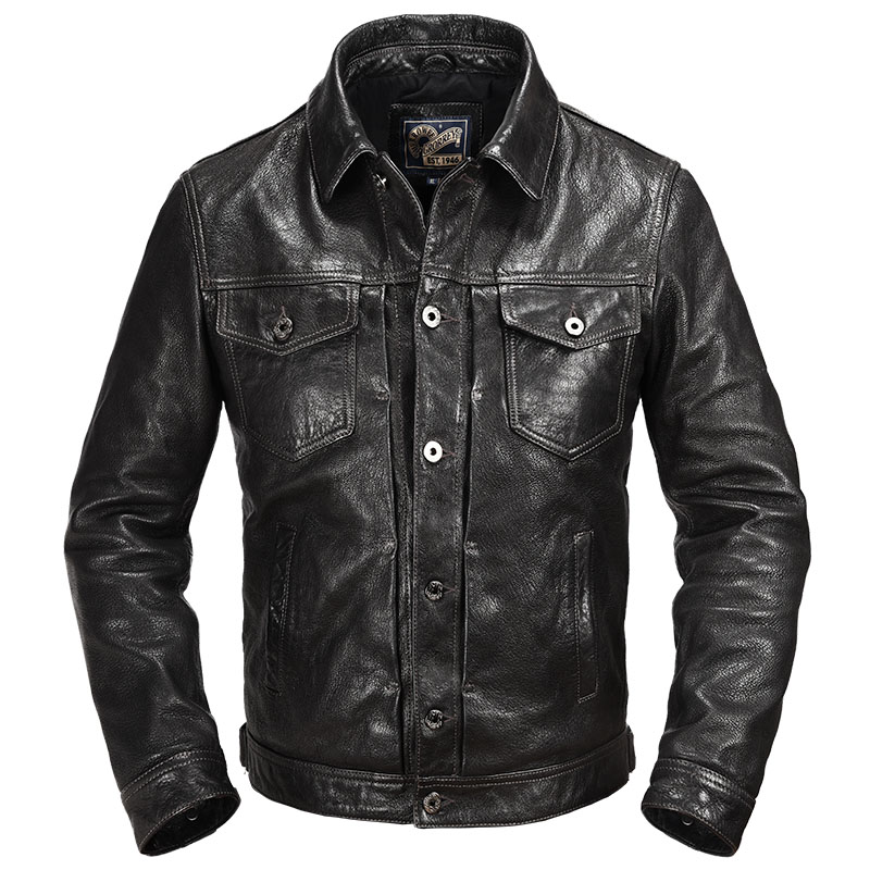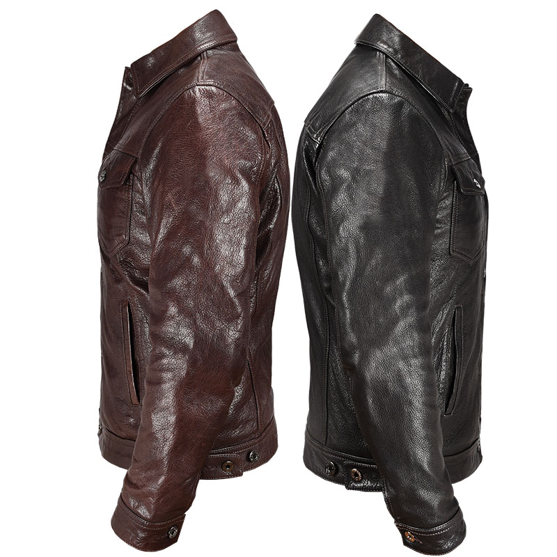Leather leather men's head layer goatskin motorcycle youth slim lapel fashion trend leather jacket handsome jacket
