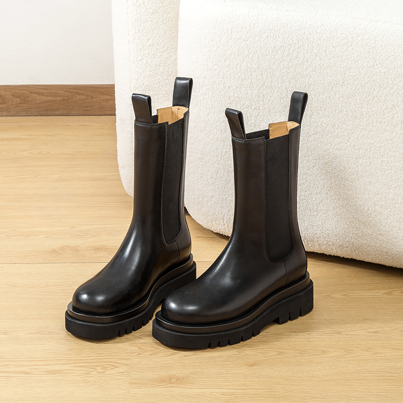 Chelsea booties women plus velvet thickened fur integrated smoke pipe thick soled smoke tube boots leather B у bv Martin boots