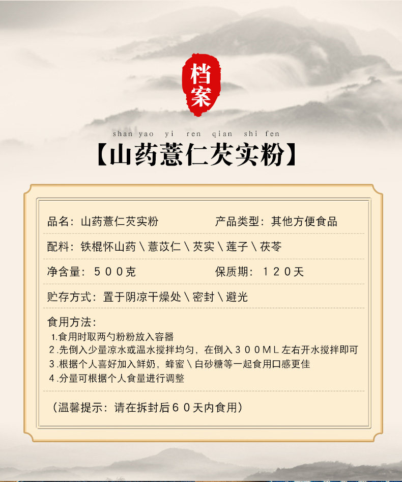 Baiguhui Wuxing Pi Jian San Yam Coix Rice Euryale Powder Nutritional Breakfast Food Conditioning Brewing Beverage Office Workers Substitute