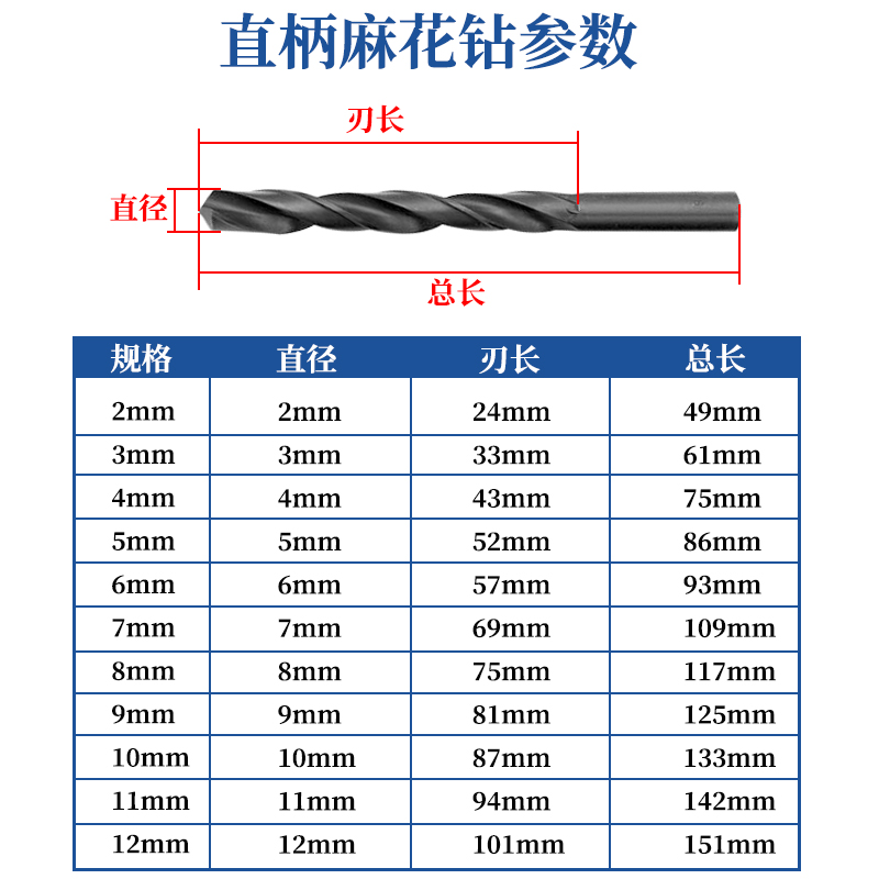 2mm black drill 3mm black drill 4mm black drill 5mm black drill 6mm black drill 7mm black drill 8mm black drill 9mm black drill 10mm black drill 11mm black