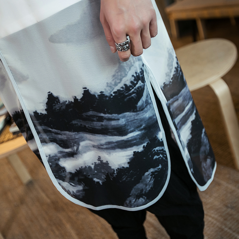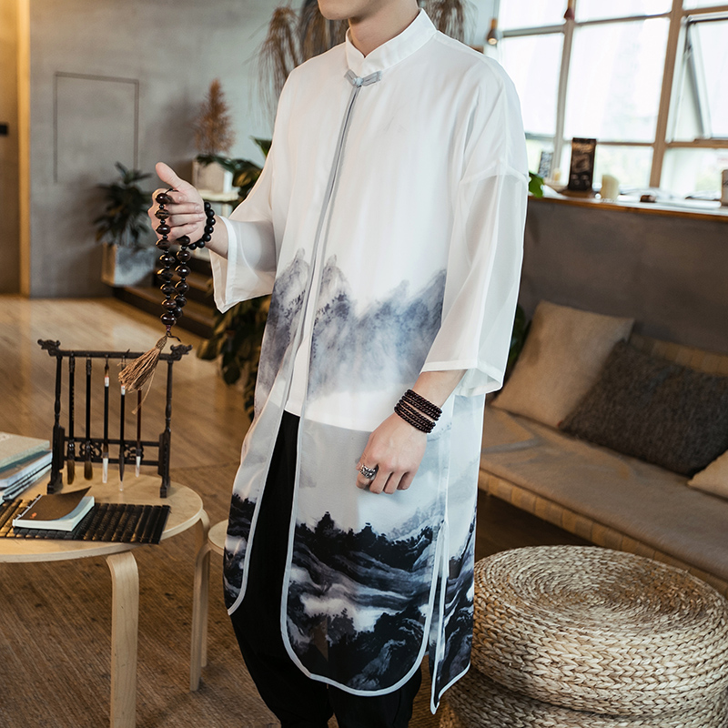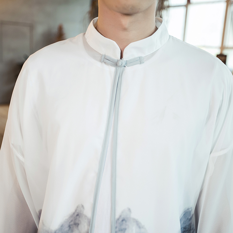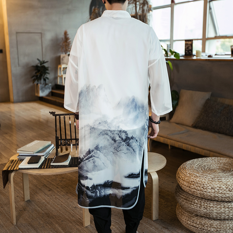 Landscape painting Chinese wind men wear thin snow coat men's sunscreen coat summer retro shirt
