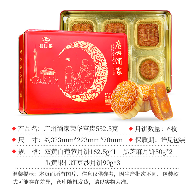 Ronghua Fugui Moon Cake Gift Box 532 5g (6 mooncakes with double yellow) Eight Star Daily Festive Moon Cake Gift Box 520g (8 mooncakes) Egg Yolk Jam Red Bean Paste Mooncake Gift Box 650g Double