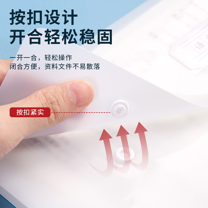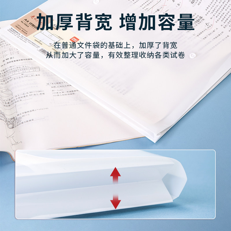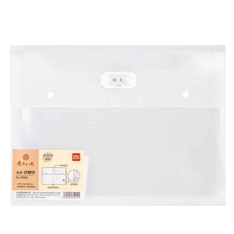 Deli 72613 File Bag Folder Button Label Index Transparent A4 Thickened by Large Capacity Student Storage Bag Information Archival Papers Bag Waterproof Office supplies