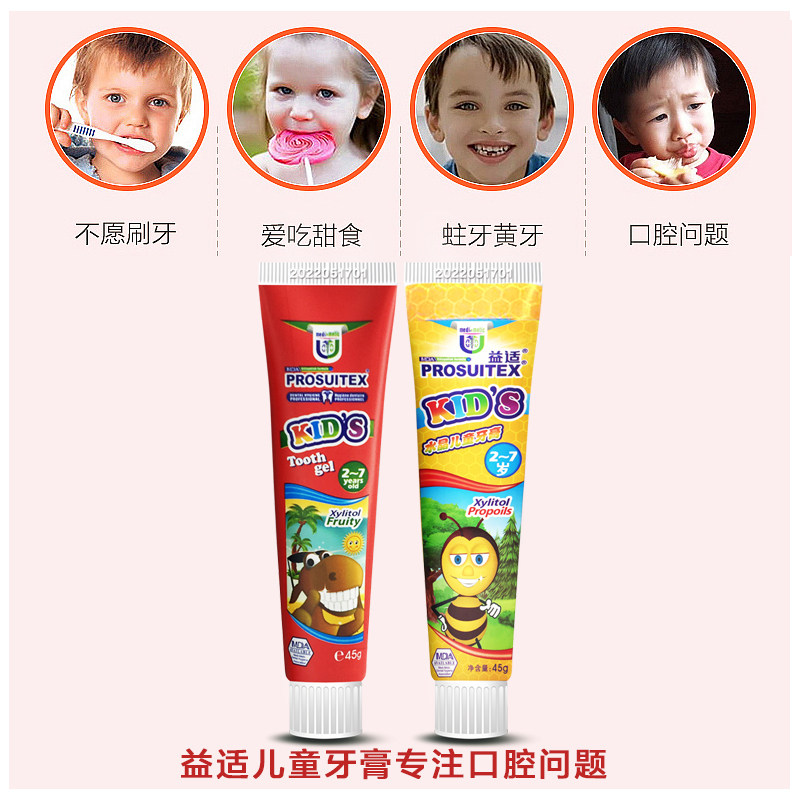 Yishi Xylitol Toothpaste Crystal Children's Toothpaste Fragrant Strawberry Flavor 45g Free Toothbrush