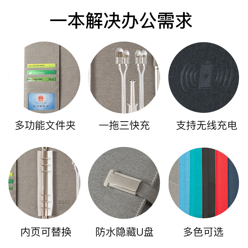 Wireless charging notepad multi-function notebook high-end U disk mobile charging office A5 book sub-business mobile power notebook sub-enterprise meeting minutes this set custom printable LOGO