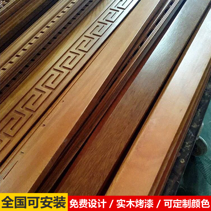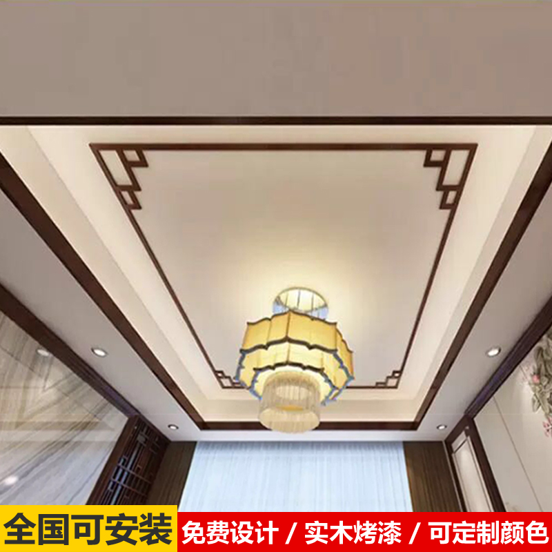 New Chinese-style living room aisle suspended ceiling shape solid wood line flat line L-shaped line simple ceiling decorative corner flower