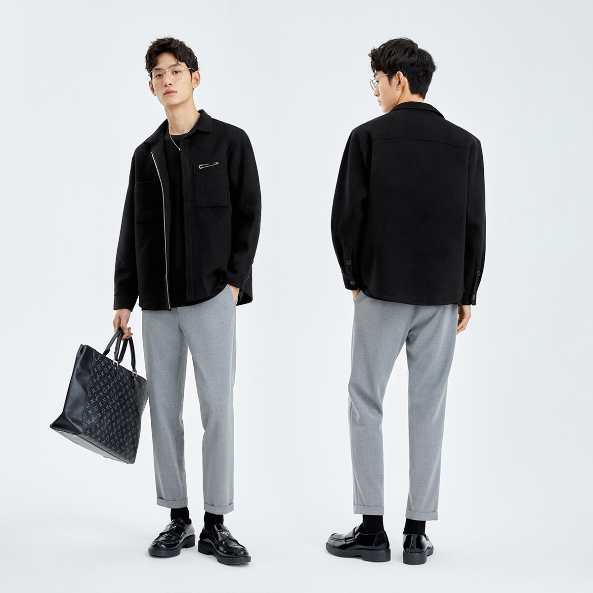 Peacebird Men's Australian Wool Double-sided Woolen Jacket Shirt Jacket Loose Tooling Jacket Short Woolen Coat