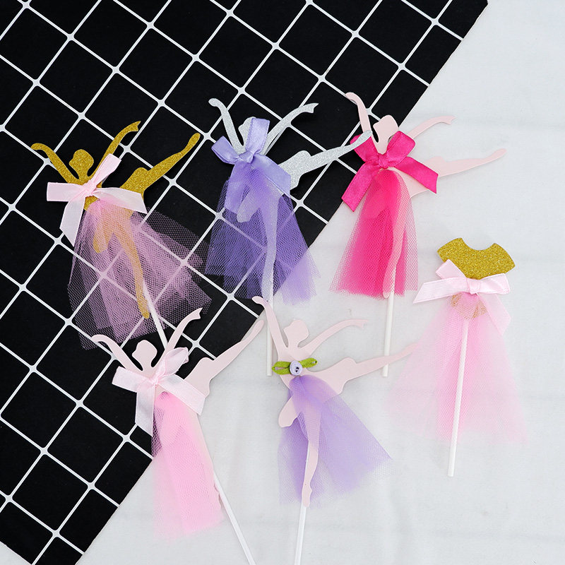 Birthday Party Princess Cake Decoration Card Frosted veil Dancing Jam Flag Baking Bow accessories