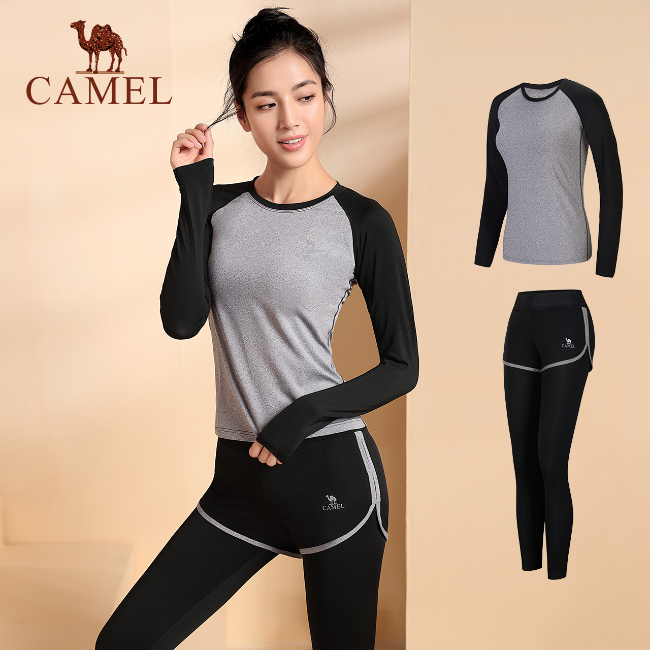 Camel Yoga Suit Long Sleeve Running Suit Fitness Room Breathable Sportswear Fitness Suit Professional Fitness Suit Woman