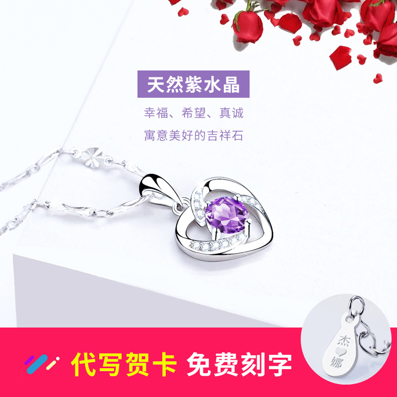 999 pure silver necklace female heart-shaped lock bone chain pendant light extravagant and small crowddesign birthday present send girlfriend wife-Taobao