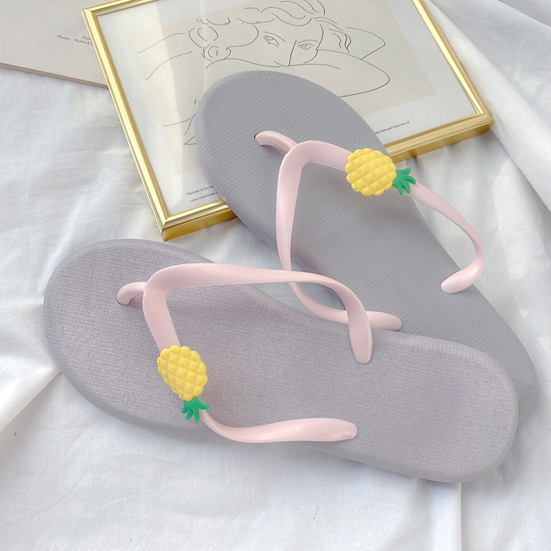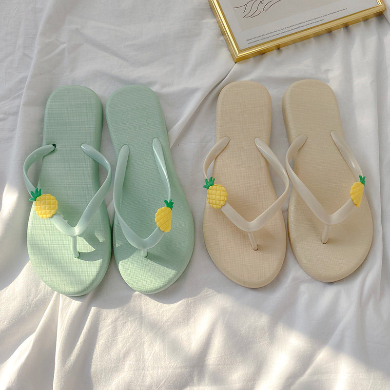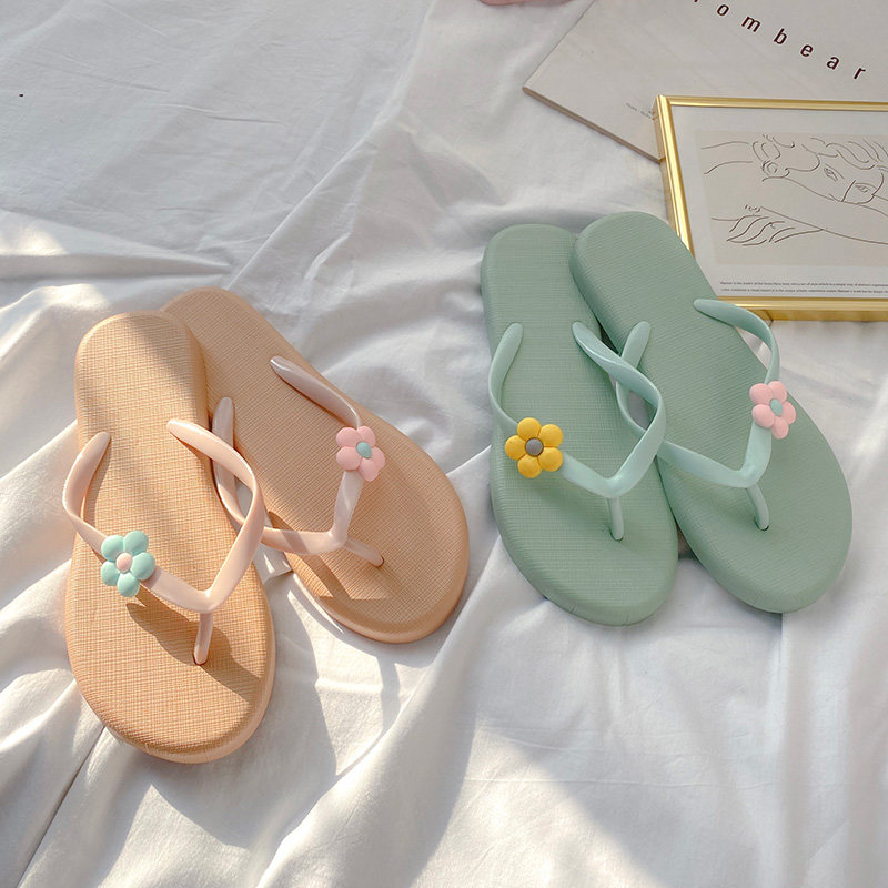 2020 new style flip-flops women's summer wear small fresh cute cartoon flowers flat bottom flip-flops non-slip beach slippers
