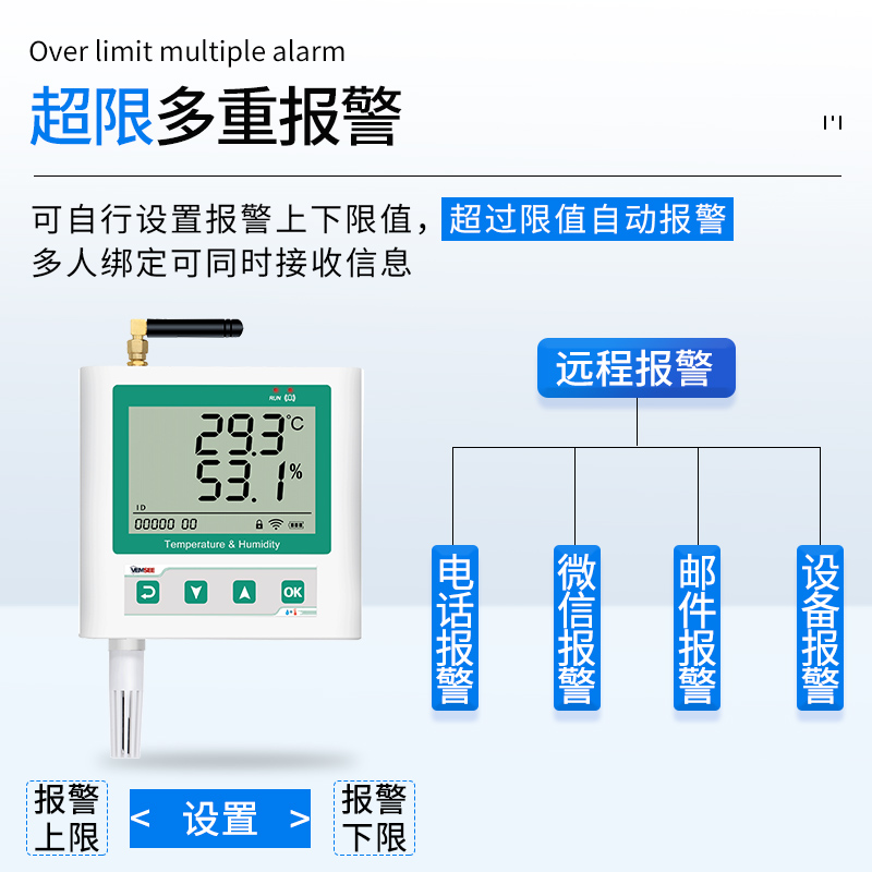 4G temperature and humidity recorder greenhouse agricultural breeding farm remote mobile phone monitoring alarm wireless temperature and humidity meter