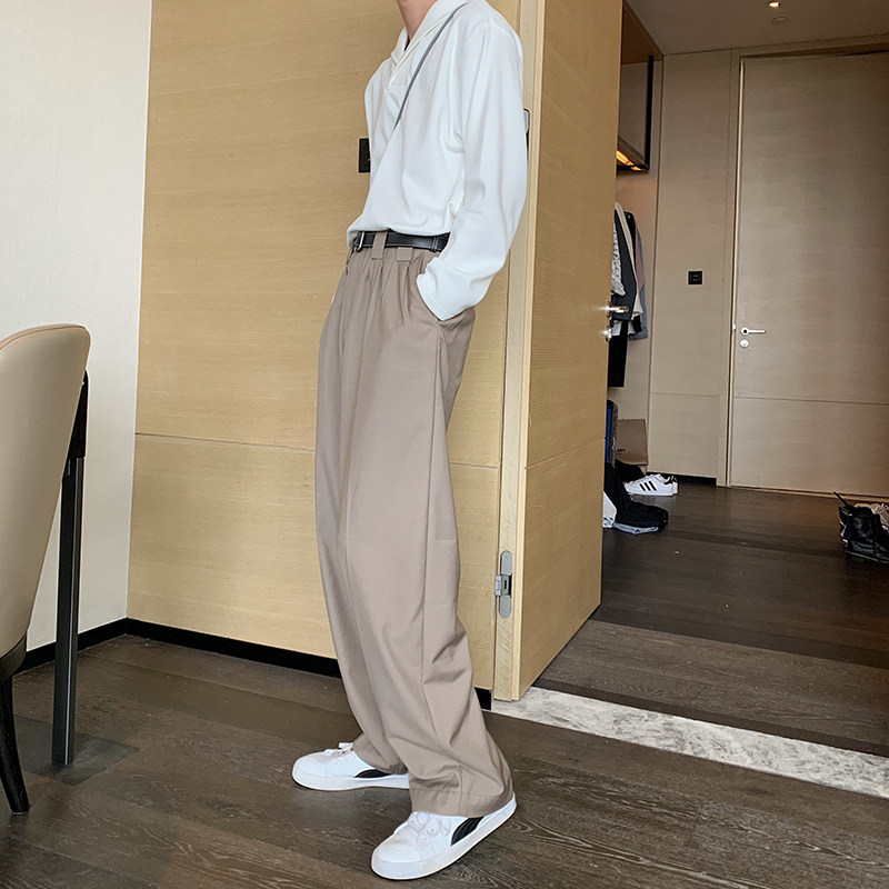 Hualun design suit pants men's straight tube loose hanging feeling casual trousers Korean trend wide feet black trousers