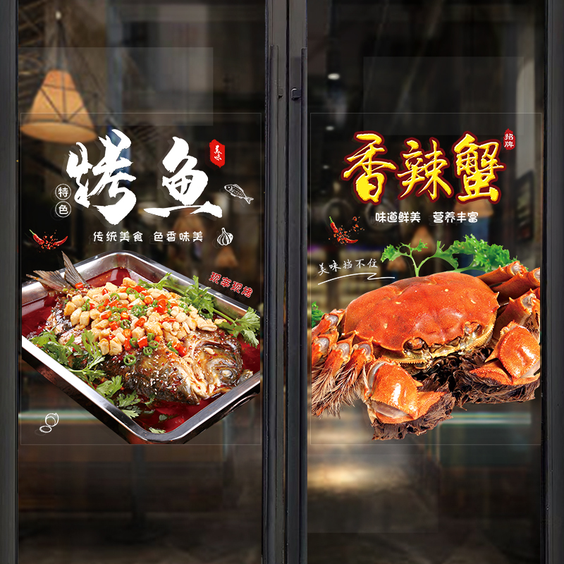 Grilled Fish Glass Sticker Crab Iron Plate Squid Minced Meat Eggplant Catering Wall Decoration Personality Creative Poster Advertisement